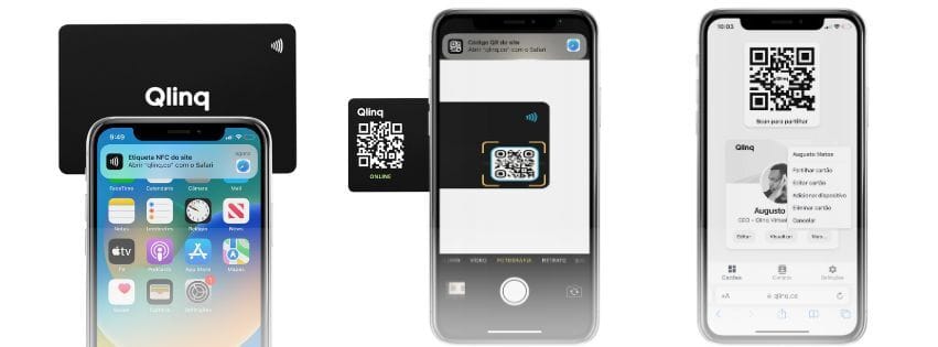 Os dias de carregar uma carteira volumosa cheia de cartões de visita em papel ficaram para trás. Com o cartão de visita Qlinq, quando chega a hora de compartilhar seus dados, basta tocar seu cartão com o dispositivo da outra pessoa ou fazer com que ela escaneie seu código QR. Em um segundo, você obtém o seguinte resultado: